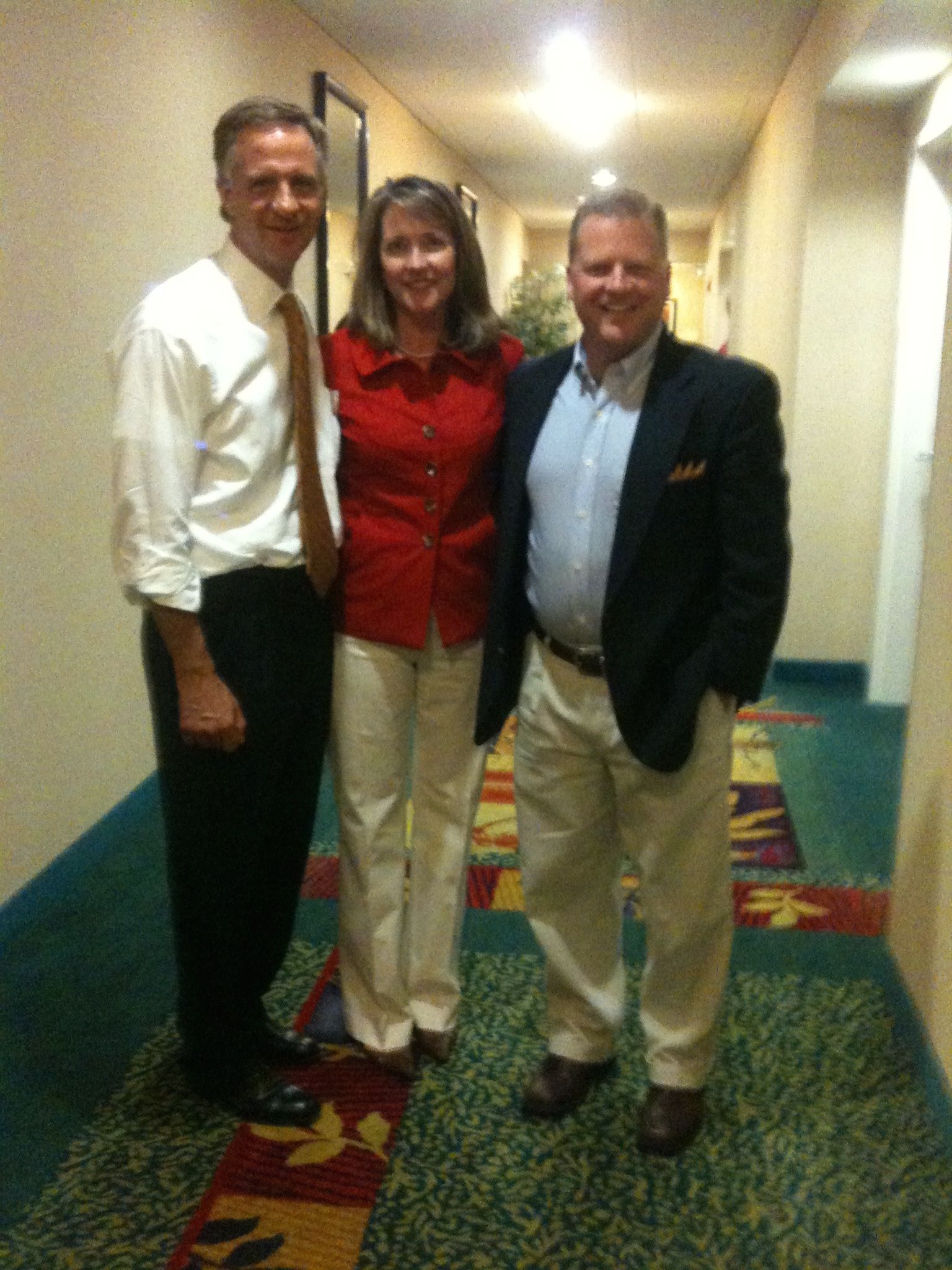 IN 2010 Bill Haslam called the cell phone of Brannon Howse and asked Brannon if he, like other gubernatorial candidates could speak to his large worldview class in Collierville, TN. Bill did an excellent job speaking about Christian worldview issues that evening and went on to win the election for Governor and serve two consecutive terms. Brannon his picture with Bill and his wife Crissy.